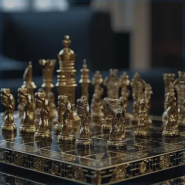 Ein edles Schachspiel ist mehr als nur ein Brettspiel – es ist ein zeitloses Symbol für strategisches Denken und kultivierte Eleganz, das jeden Raum aufwertet.