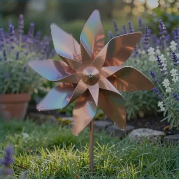 Ein Windspiel bringt sanfte Bewegung und schimmernde Farbspiele in den Garten Ihrer Großeltern. Es ist ein Geschenk, das ihnen täglich Freude bereitet, während sie von ihrem Lieblingsplatz aus die hypnotisierenden Drehungen beobachten können – eine beruhigende kleine Magie für ihren wohlverdienten Ruhestand.
